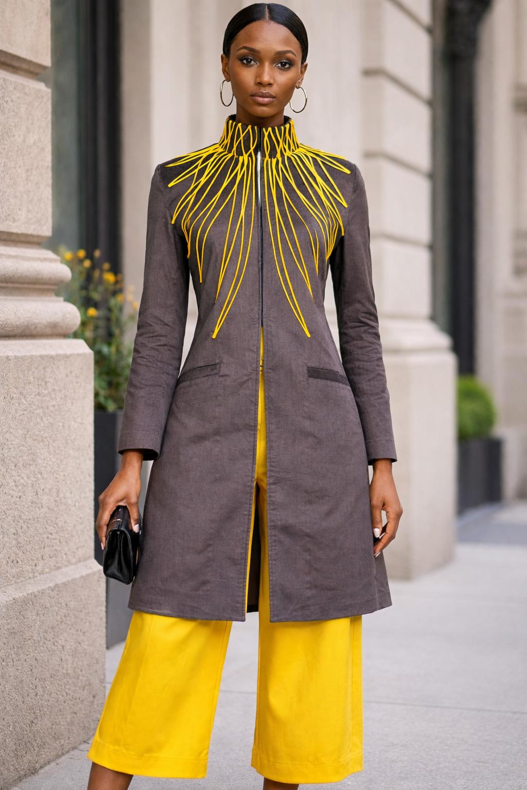 Abrigo de pana lisa con cuello mao. Cierre con corchetes y 2 bolsillos
