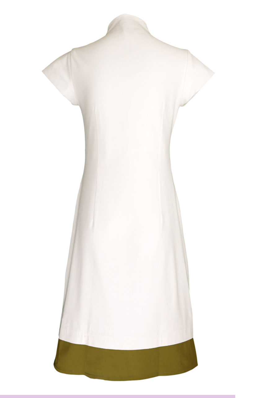 Vestido realizado en punto roma y satén de algodón. EL vestido está forrado con